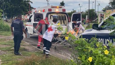 Brutal golpiza propinaron a agresivo sujeto, luego de que este intentó golpear a una joven con 6 meses de embarazo y a otras personas, el cual fue auxiliado por Socorristas de la Cruz Roja, quienes lo llevaron a recibir atención médica a un hospital.