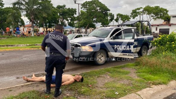 Los hechos ocurrieron esta tarde de martes en la avenida del Paraíso del fraccionamiento Jardines del Sol, en San José del Valle, donde reportaron a las autoridades policíacas que frente a la plaza pública estaba un masculino tirado quien vestía solo un boxer del que decían que momentos antes habían golpeado varios sujetos.