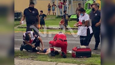Algunos masculinos al ver que el sujeto no se calmaba optaron por someterlo y le propinaron brutal golpiza luego de que este arremetió contra ellos, el cual quedó tirado en medio de la jardinera central de la avenida principal del fraccionamiento.