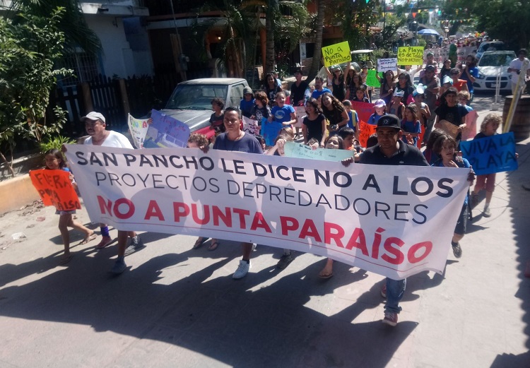 En la víspera de la visita del presidente de la República, Andrés Manuel López Obrador al estado de Nayarit, el Pueblo de San Pancho Unido, realizó una marcha de rechazo a la construcción de condominios Punta Paraíso que se edificó en terreno ganado al mar como extensión de la propiedad y que basada en información falsa en manifestación de impacto ambiental, fue autorizada por los tres niveles de gobierno, según la manifestación de los inconformes que llevan una lucha ya de dos años contra esta obra, edificio que ya luce casi terminado frente a una de las pocas playas vírgenes de Bahía de Banderas enclavado en la Riviera Nayarit.