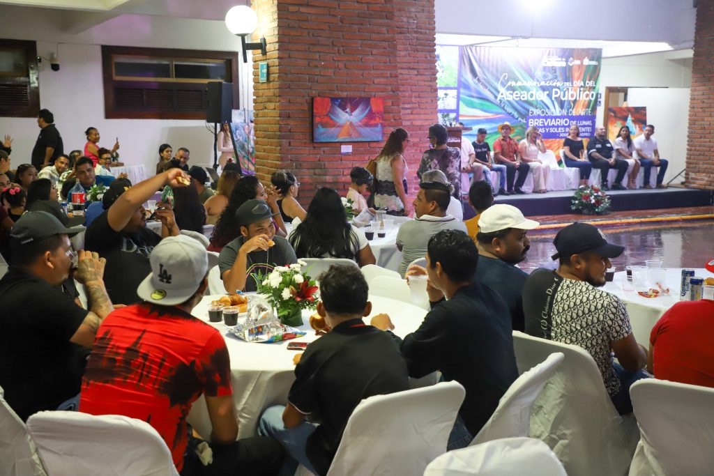 Como un merecido reconocimiento a su gran labor diaria por mantener limpia la ciudad, en el marco de la exposición pictórica “Breviario de Lunas, Runas y Soles Insolentes” del artista Josepo Casiopeo, el gobierno municipal de Puerto Vallarta festejó con una cena de gala a los trabajadores de Aseo del Ayuntamiento, en ocasión del Día del Aseador Público.