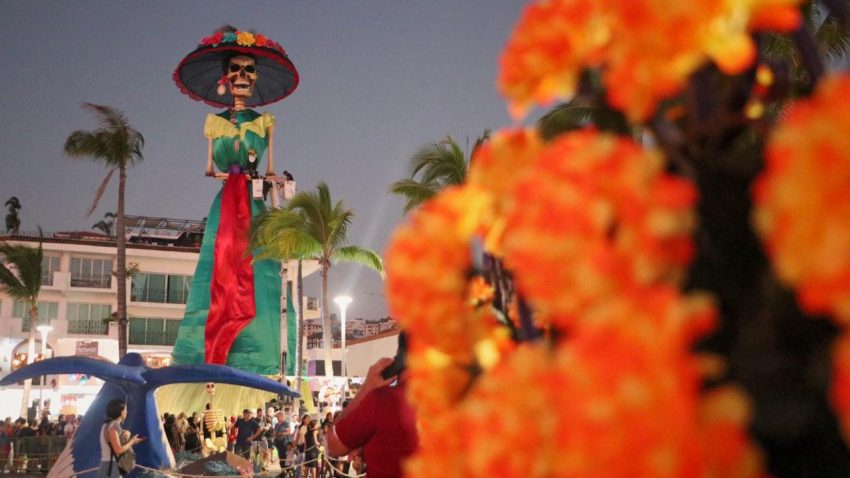 Cientos de personas se dieron cita este viernes en el malecón para el corte de listón de la catrina monumental de Puerto Vallarta, midiendo ahora casi 27 metros de altura.