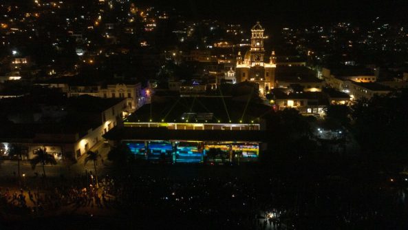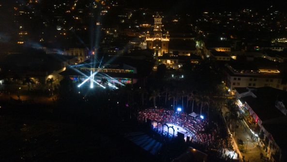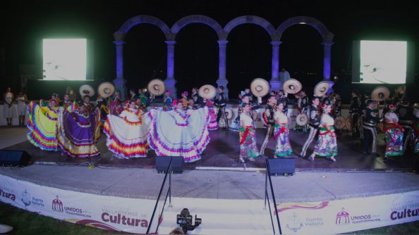 El programa en el teatro al aire libre de Los Arcos lo abrió el grupo de ballet folclórico ‘Vallarta Azteca’, que presentó diversas estampas regionales, tras lo cual se realizó la primera de dos proyecciones del espectacular mapping piromusical en la parte poniente del palacio municipal, en el que los asistentes disfrutaron de un recorrido histórico desde los orígenes de Puerto Vallarta hasta el icónico destino de playa que es hoy en día, así como de un gran espectáculo pirotécnico.