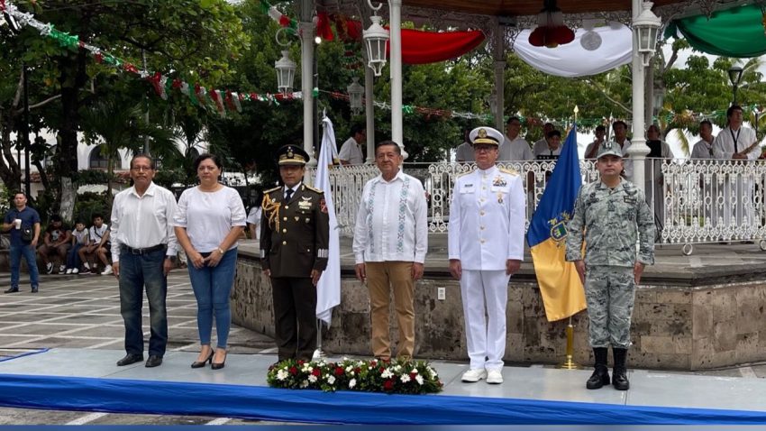 Acompañaron al presidente municipal en esta ceremonia, el General de Brigada D.E.M. Sergio Ángel Sánchez García, Comandante de la 41 Zona Militar; el Vicealmirante Fernando Ríos Sosa, Comandante de la XII Zona Naval; el Inspector General Leonardo Damaso Solís Guillén, por parte de la Guardia Nacional y el maestro Cesáreo Torres Ceja, subdirector de Educación Municipal.