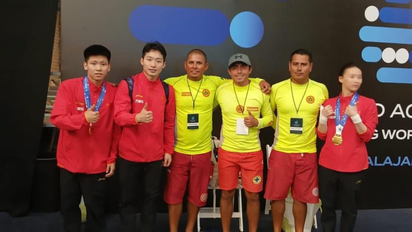 Con el objetivo de salvaguardar la integridad de los atletas en la Copa del Mundo de Clavados Guadalajara 2025, elementos del área prehospitalaria de Protección Civil y Bomberos de Puerto Vallarta participaron como parte del equipo de guardavidas en este importante evento internacional.