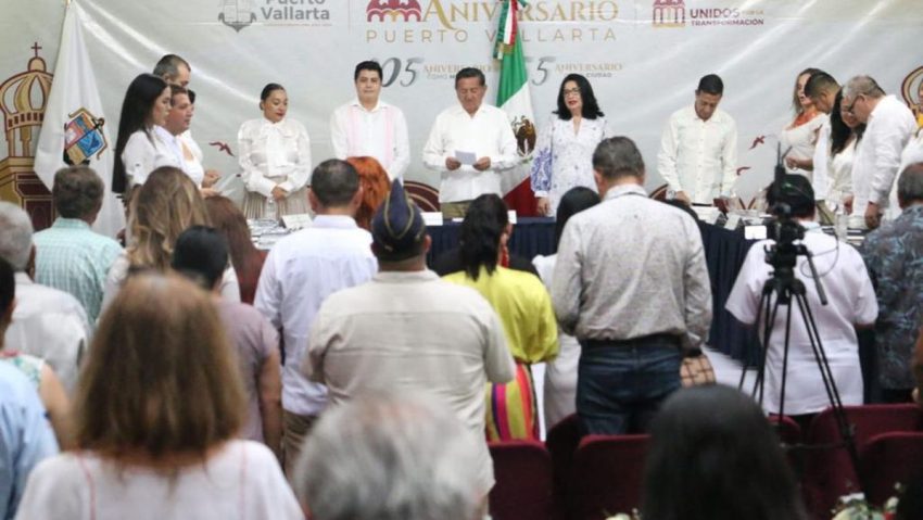 Con un reconocimiento a la riqueza natural de este destino turístico y a la grandeza de su gente, el Ayuntamiento conmemoró el 105 aniversario de la elevación de Puerto Vallarta como municipio y 55 como ciudad, a través de una sesión solemne realizada en el patio central de la presidencia.