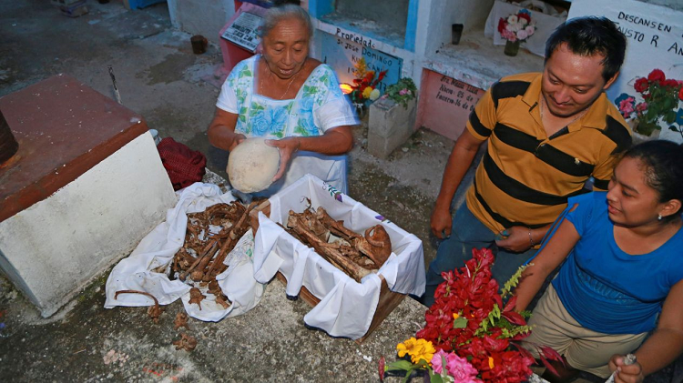 Existe un lugar en Campeche en donde la gente exhuma los restos de sus difuntos para limpiar los huesos como parte de la festividad del Día de Muertos.