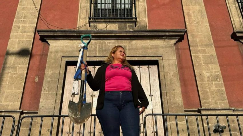 La activista pretendía entregarle la pala con la que busca a sus hijos desaparecidos como un recordatorio de su promesa de campaña de priorizar la búsqueda de personas desaparecidas y para exigir que las autoridades correspondientes cumplan con su trabajo.