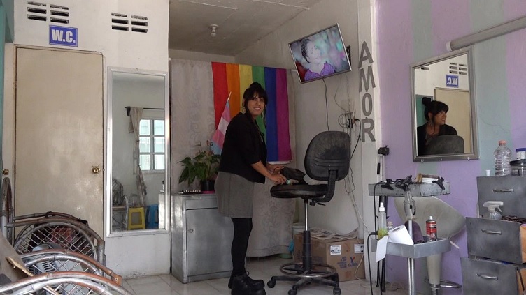 Jazz Bustamante en su salón de belleza, donde trabaja como estilista. También es una reconocida activista LGTBI+ (Foto: Infobae México)Al mismo tiempo, impartía catequesis en una Iglesia Católica. La religión y la vida parroquial eran un pilar en su vida, pero todo se torció cuando en su congregación descubrieron que se asumía como mujer.