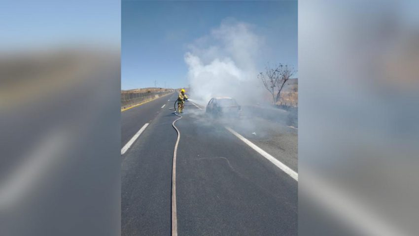 A la brevedad, el personal bomberil realizó las labores necesarias para sofocar el incendio del vehículo y de un pastizal aledaño a la zona.