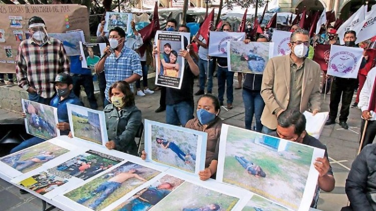 El pasado 21 de junio, frente al Palacio de Gobierno de Oaxaca, los sobrevivientes de la masacre en Huazantlán del Río reclamaron que la Fiscalía General de Oaxaca no avanza en las investigaciones.