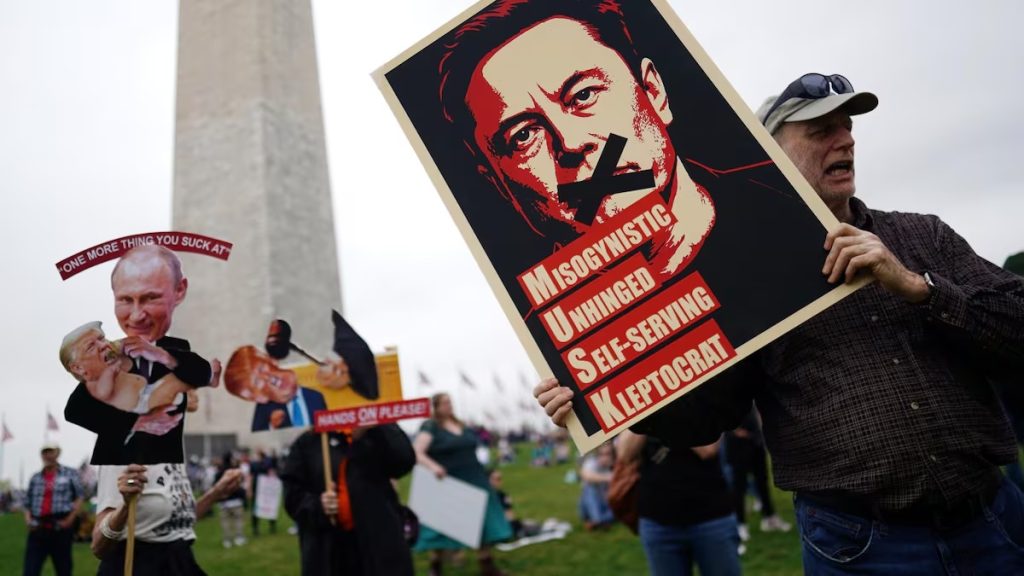 La protesta, dirigida especialmente contra Trump y su mano derecha, el magnate Elon Musk, ideólogo del recorte masivo del Gobierno, fue la primera gran manifestación desde que el líder republicano regresó a la Casa Blanca el 20 de enero.