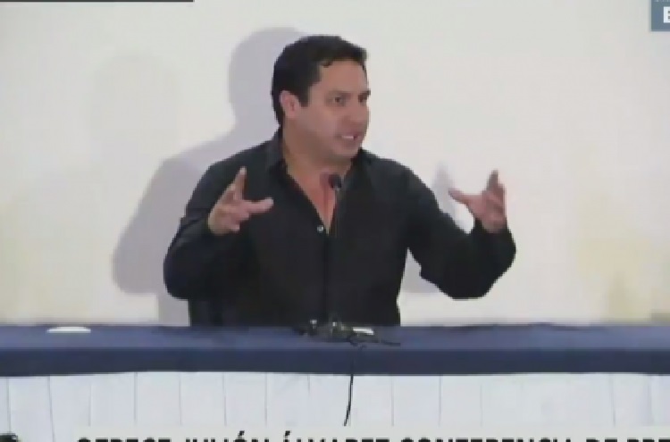 El cantante Julión Álvarez dio esta tarde una conferencia de prensa luego de que el Departamento del Tesoro de Estados Unidos lo vinculara con Raúl Flores Hernández, presunto líder de una organización delictiva que opera en Guadalajara y en Ciudad de México.