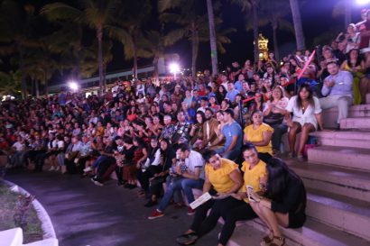 Posteriormente, el alcalde acompañado por su esposa e hijas, así como autoridades municipales, disfrutaron del show de luces navideñas que realizó Prana en el teatro al aire libre Aquiles Serdán (Arcos del Malecón).