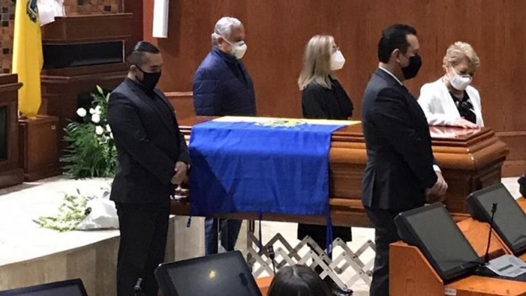 El cortejo fúnebre encabezado por su esposa Lorena Arriaga y sus dos hijas se dirigió a Palacio de Gobierno en donde fue recibido por el gobernador del estado Enrique Alfaro