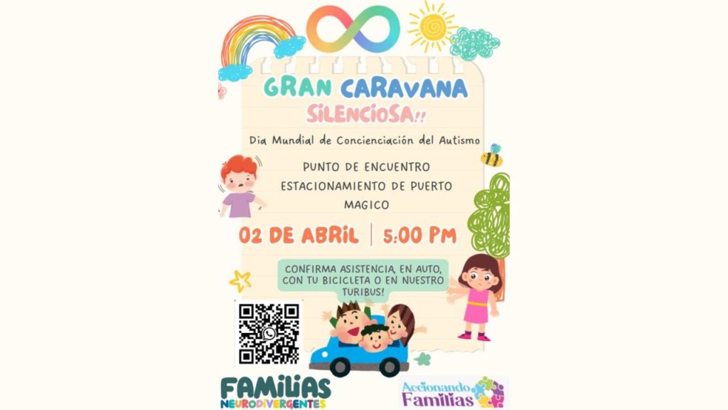 En el Día Mundial de Concienciación sobre el Autismo el colectivo Familias Neurodivergentes, con el apoyo del gobierno del bien, encabezado por el alcalde Luis Munguía González, realizará la Gran Caravana Silenciosa por la Neurodivergencia en Puerto Vallarta. El punto de encuentro será el estacionamiento de Puerto Mágico, y la convocatoria está abierta a toda la ciudadanía.