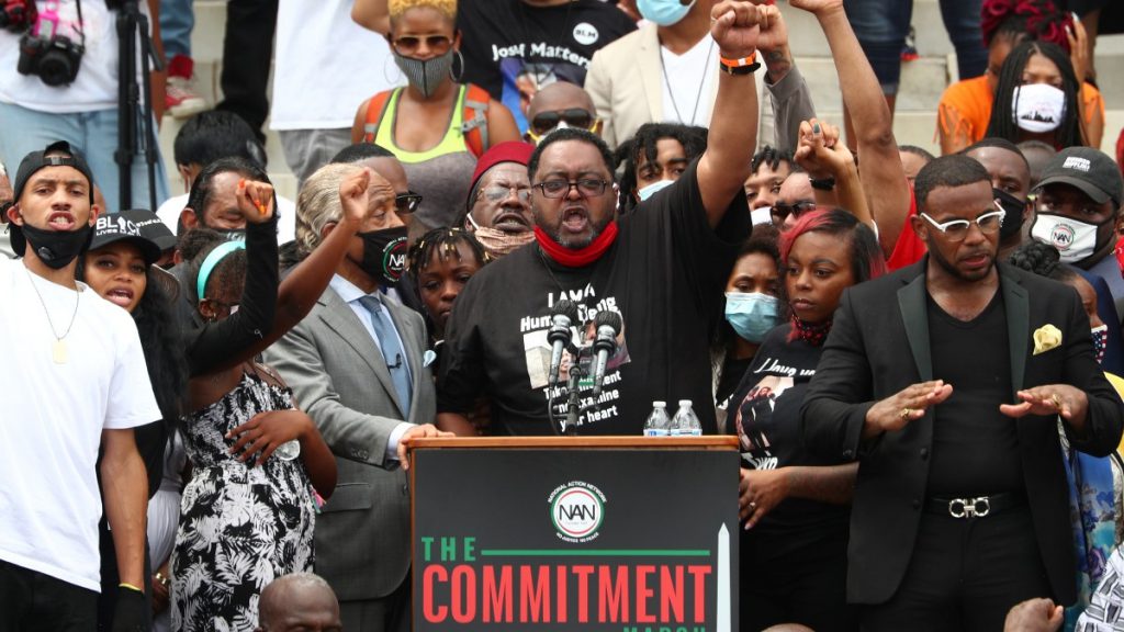 En el encuentro se reclamó una reforma profunda a las policías y al sistema de justicia. Los manifestantes escucharon los discursos de dirigentes y activistas de los derechos civiles, que hablaban desde un atril situado junto al Monumento a Lincoln.