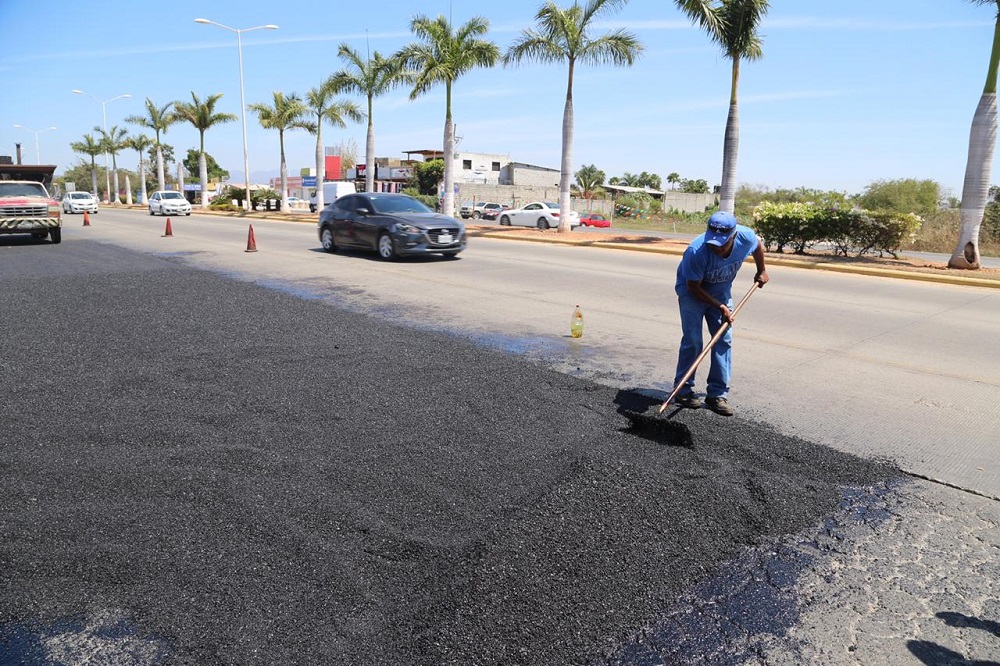 Como parte de las acciones preventivas a las vacaciones de Semana Santa y Pascua y por instrucciones del presidente municipal, doctor Jaime Cuevas Tello, personal de Servicios Públicos Municipales, realizó el pasado jueves, trabajos de bacheo en las laterales del Bulevar Riviera Nayarit.