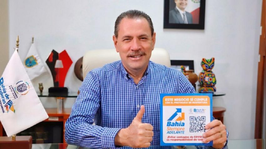 Así lo anunció el presidente municipal de Bahía de Banderas, doctor Jaime Cuevas Tello, quien indicó que negocios y empresas se registrarán en el sitio web del Ayuntamiento, “obtendrás un comprobante que deberás tener visible en tu establecimiento. Posteriormente un inspector de Padrón y Licencias, debidamente identificado, visitará tu negocio, te brindará asesoría y te entregará un distintivo de cumplimiento del protocolo de reapertura si reúnes los requisitos”.