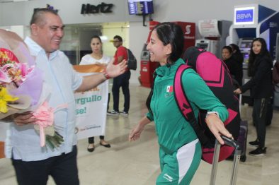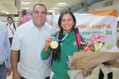 Tras una destacada participación en los Juegos Panamericanos de Lima 2019, en donde conquistó la medalla de oro en Frontenis Doble Femenino, la vallartense Guadalupe ‘Lupita’ Hernández Encarnación, arribó la mañana de este lunes a esta ciudad, en donde fue recibida por el alcalde Arturo Dávalos Peña, quien la felicitó por este importante logro para todos los mexicanos y reconoció su calidad deportiva que la ha llevado a ocupar el primer lugar en las principales competencias internacionales de esta especialidad.