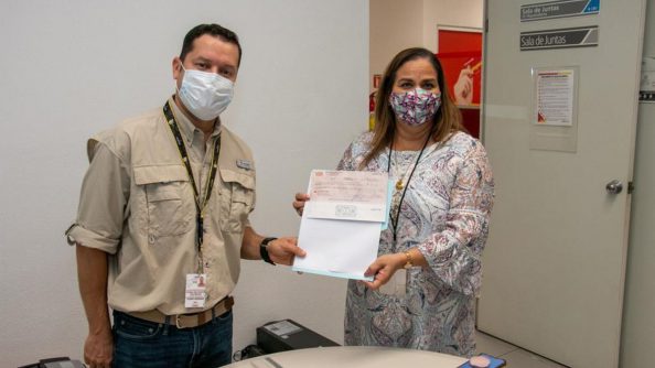 La presidenta del organismo asistencial, entregó a Eduardo Mateos Mauleon, gerente general de plaza de esta cadena comercial, los agradecimientos a las sucursales que recaudaron más fondos, logrando reunir en esta ocasión un total de $103,018.27 durante los meses de noviembre y diciembre de 2020.