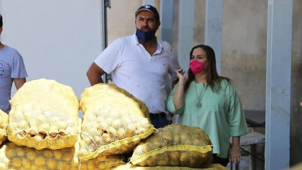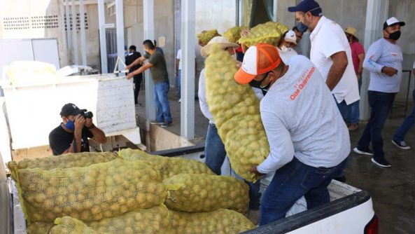 La tarde del martes llegó al municipio el cargamento de papas, mismas que fueron debidamente desinfectadas y refrigeradas para su conservación, siendo este miércoles la entrega a treinta coordinadores de sector municipal, cuatro delegados, tres asociaciones civiles y cuatro casas hogar.