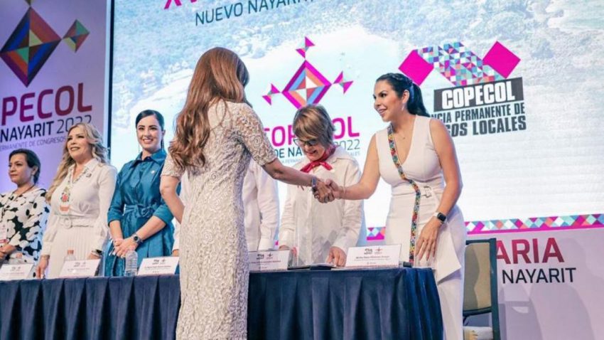 Bahía de Banderas, Nay., a 26 de agosto de 2022.-Esta mañana la presidenta Mirtha Villalvazo Amaya participó en la XV Asamblea Plenaria de la COPECOL (Asamblea Plenaria de la Conferencia Permanente de Congresos Locales), acompañada de la diputada presidenta de la COPECOL, Irma Leticia González Sánchez; de la magistrada Rocío Esther González García, presidenta del Poder Judicial; la diputada Alba Cristal Espinoza Peña, presidenta del Congreso del Estado de Nayarit; y el gobernador de Nayarit, Miguel Ángel Navarro Quintero.