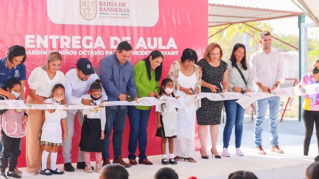 Aula nueva y barda perimetral fue lo que este miércoles entregó la presidenta municipal de Bahía de Banderas, Mirtha Villalvazo, al Jardín del Niños Octavio Paz ubicado en el Fraccionamiento San Vicente del Mar, en la comunidad de San Vicente.