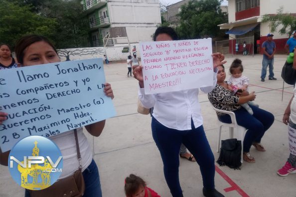 Este miércoles 18 de septiembre 2019 padres de familia del segundo grado turno matutino de la primaria Maximino Hernández de la comunidad Mezcales, Bahía de Banderas, Nayarit, se manifestaron ante la directora del plantel educativo, profesora, Xitlaly Álvarez, luego de una reunión de padres de familia para elegir a nueva tesorera de la Sociedad de Padres de Familia que encabeza, Victoria Alarcón, con el fin de exigir a los SEPEN que den nombramiento a su profesor de grupo en virtud de que desde que inicio el ciclo escolar 2019/2020, no tienen maestro lo que las obligó a pagar un sustituto pero este ya dejó de asistir y el grupo se quedó sin profesor y la Sociedad de Padres de Familia no puede seguir pagando otro profesor por tiempo indefinido.