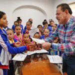 Este lunes, el Presidente Municipal de Bahía de Banderas, doctor Jaime Alonso Cuevas Tello, entregó reconocimientos a las niñas que integran la Escuela Municipal de Gimnasia, por su sobresaliente participación en el Campeonato Estatal, realizado del 12 al 14 de abril en la ciudad de Tepic.