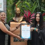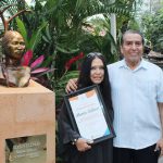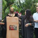 En el marco de este homenaje, la edil Guadalupe Guerrero, a nombre del Ayuntamiento, hizo entrega de un reconocimiento a la artista por su contribución al desarrollo cultural y de las artes plásticas en la ciudad, además de develar la escultura “Identidad”, que se encuentra ubicada en la isla del Río Cuale.