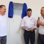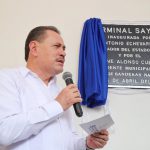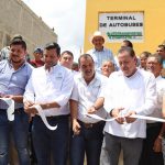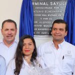 El gobernador de Nayarit, Antonio Echevarría García, y el presidente municipal de Bahía de Banderas, doctor Jaime Cuevas Tello, develaron la placa conmemorativa y cortaron el listón inaugural de la nueva terminal de la empresa Autotransportes Compostela.