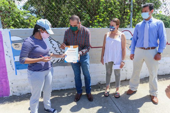 El alcalde Arturo Dávalos, entregó reconocimientos y estímulos económicos a los artistas que participan en el concurso “Proximidades, muros que abrazan”