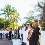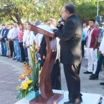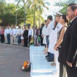 En representación del alcalde Arturo Dávalos Peña, el secretario general del Ayuntamiento, Víctor Bernal Vargas, encabezó la ceremonia cívica realizada en la explanada de la unidad deportiva Agustín Flores Contreras, para rendir honores a la memoria del llamado ‘Benemérito de las Américas’, hombre de leyes, principios y de lucha por su patria.