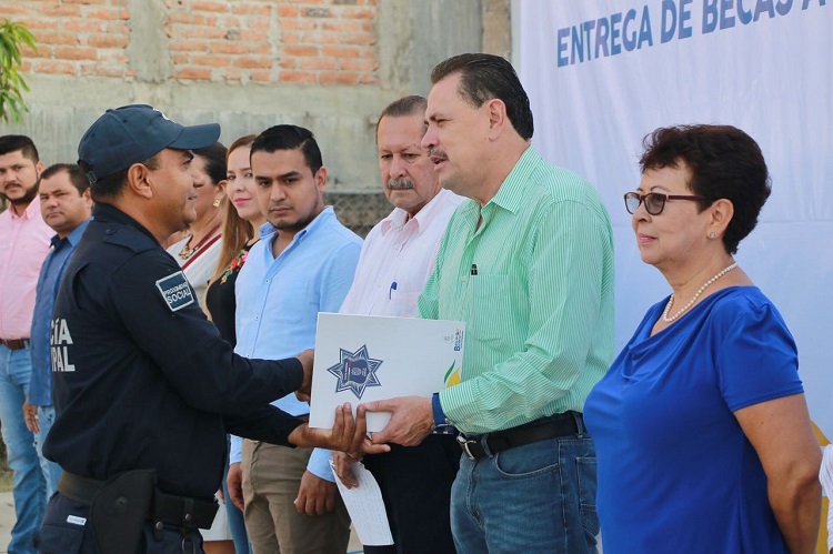 * El Presidente Municipal de Bahía de Banderas, Jaime Alonso Cuevas, entregó becas del programa FORTASEG 2017 a elementos policiales que ingresarán a las filas de la Dirección de Seguridad Pública Municipal, por un monto de 225 mil pesos, para el curso “Formación Inicial para Aspirantes”.