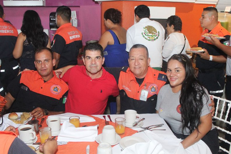 “Quiero felicitar a todas y todos los Bomberos de Puerto Vallarta hoy en su día. Por supuesto que nos sentimos muy orgullosos de todos ustedes. Este Ayuntamiento estará fortaleciendo todavía más esta noble institución, a nuestros héroes anónimos, a nuestros ángeles guardianes que están ahí los 365 días del año cuidándonos”, señaló el primer edil en el marco del desayuno que se ofreció a los homenajeados y sus familias.