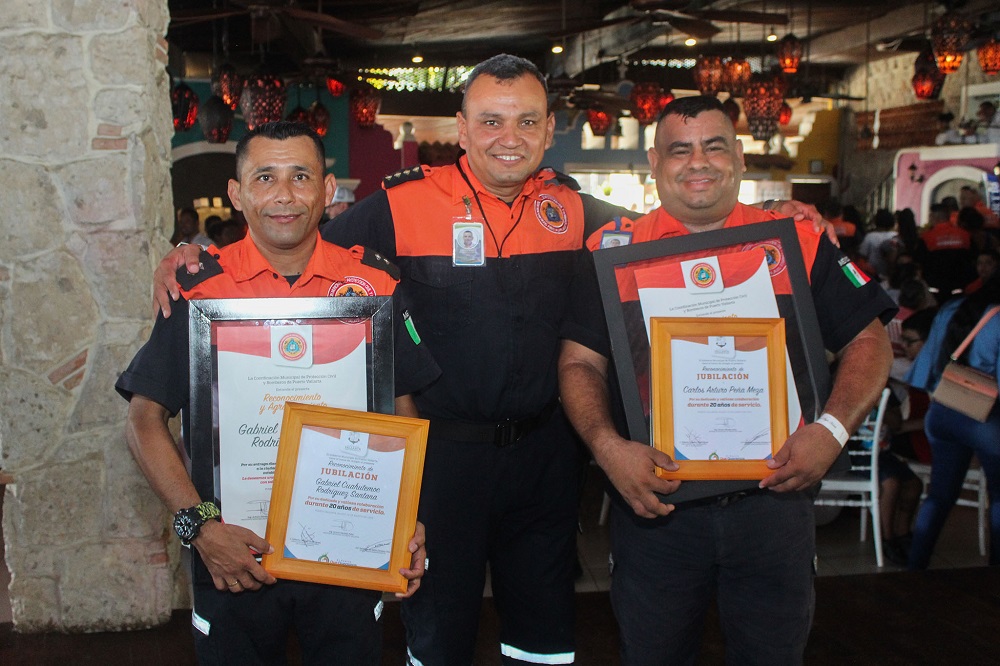 En esta ocasión, se entregaron reconocimientos por parte del Ayuntamiento y el Sindicato de Trabajadores a los elementos Gabriel Cuauhtémoc Rodríguez Santana y Carlos Arturo Peña Meza, quienes culminan su ciclo dentro de esta institución al recibir su jubilación tras años de entrega y servicio a la comunidad vallartense. También se distinguió el trabajo de los elementos Fernando Sánchez Piña, Linda Rodríguez Medellín y Nery Steve Cardona López.