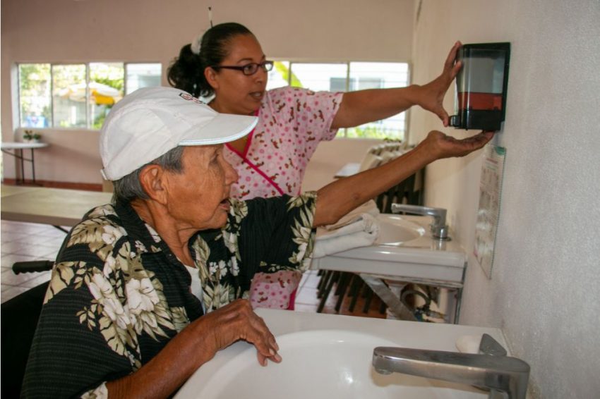 Asimismo, los adultos mayores son apoyados para que laven sus manos con frecuencia, antes y después de cada alimento, de tener contacto con alguna superficie u objeto, además de mantener la distancia mínima de un metro y medio entre cada uno para evitar el contacto de riesgo.