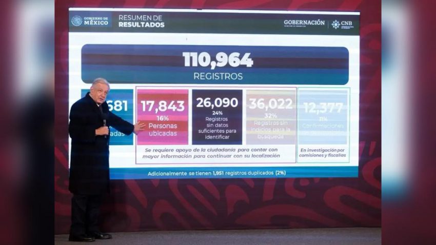 Señaló que ante los señalamientos de que en este sexenio se habían desparecido más personas que en los sexenios de Felipe Calderón y Enrique Peña Nieto por eso se instruyó a realizar una revisión, “¿qué está sucediendo?, ¿ahora existe la comisión de desaparecidos y ahora la gente está acudiendo más? ¿Qué pasa? Decidimos llevar a cabo un plan para buscar a los desaparecidos. Todo el gobierno, encontramos a muchos de los que supuestamente estaban desaparecidos.