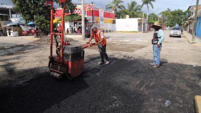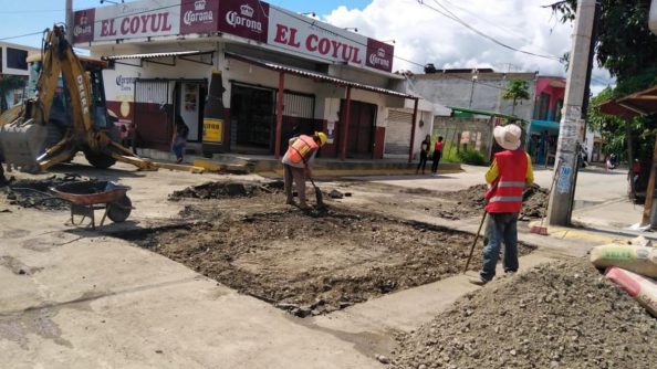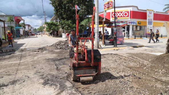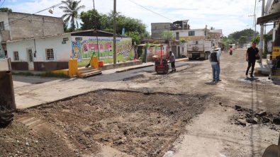 Con la integración de equipos de trabajo de las direcciones de Obras Públicas y Servicios Públicos Municipales, inició la reparación de la calle 12 de octubre en San Vicente, lo cual consistirá en levantar la base dañada, reemplazarla con material mejorado, compactar y colocar asfalto.
