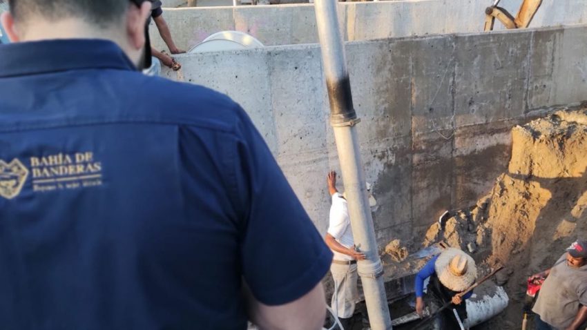 Bahía de Banderas, Nayarit, 31 de enero de 2022.- Gracias a la pronta intervención del Organismo Operador Municipal de Agua Potable, Alcantarillado y Saneamiento (OROMAPAS) se logró reparar la tubería que resultó averiada en las reparaciones que la Secretaría de Desarrollo Agrario Territorial y Urbano (SEDATU) lleva a cabo en el Arroyo del Indio, situado en la localidad de Bucerías.