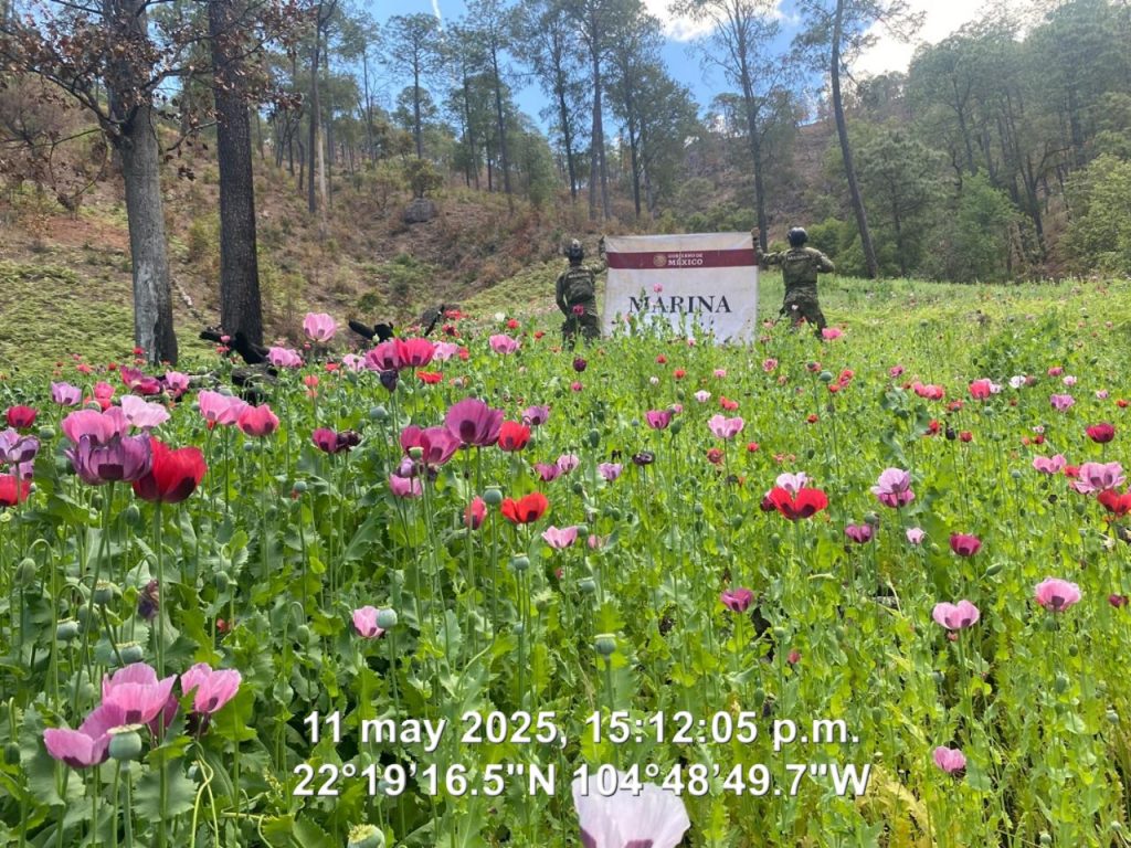 Comunicado.- La Secretaría de Marina a través de la Armada de México, informa que del 01 de abril al 11 de mayo del año en curso, personal de la Décima Zona Naval, llevó a cabo la localización y erradicación de 124 plantíos de amapola en el estado de Nayarit. Lo anterior se efectuó durante el periodo del mes de abril al 11 de mayo en diferentes acciones por elementos de la Armada de México, en inmediaciones de las localidades de Santa Gertrudis, San Rafael y El Maguey, Las Ollas, Rancho Doroteo del municipio Del Nayar, Nayarit, en donde se erradicación de 124 plantíos de amapola, en un área aproximada de 726,300 m2, dando como resultado la destrucción en el lugar de aproximadamente 16,760,000 (dieciséis millones setecientos sesenta mil doscientos) plantas, con un peso aproximado de 2,978,000 (dos millones novecientos setenta y ocho mil) kilogramos. Cabe destacar que en la lucha permanente contra el narcotráfico y ante el incremento del consumo y popularidad de drogas ilegales a nivel mundial, la Armada de México instruyó al personal naval para establecer operaciones de localización, aseguramiento y destrucción de plantíos ilícitos.