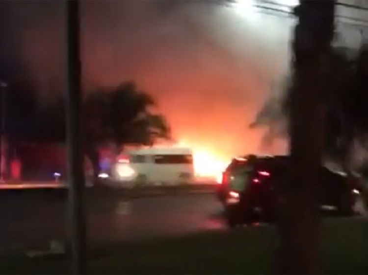 Aproximadamente a las 20:20 horas los servicios de emergencia recibieron una llamada que los alertó por un incendio presumiblemente provocado por una granada que sujetos a bordo de una camioneta habrían arrojado al lugar, al que también habrían disparado, según versiones preliminares.
