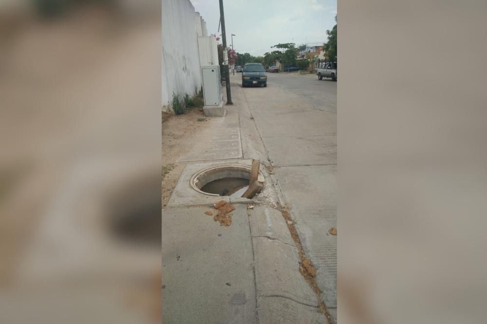 Esta en la banqueta de la calle Mar Báltico del fraccionamiento Altavela, vecino pide a la CFE reponga la tapa del registro