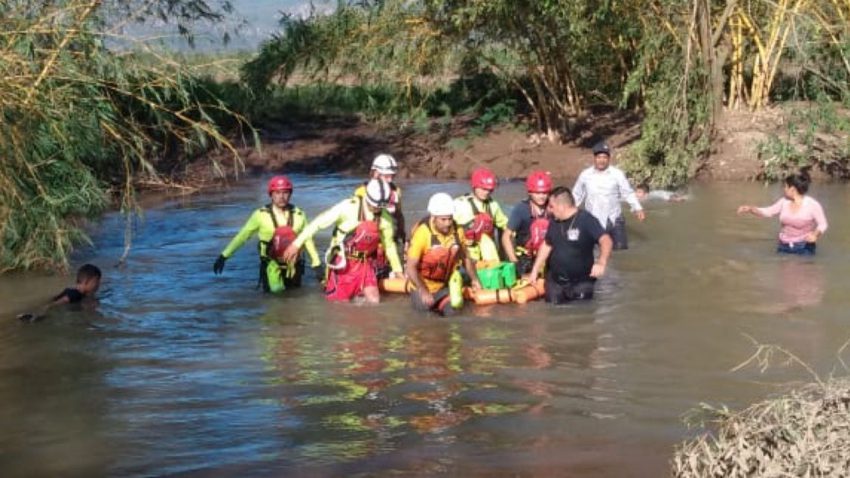 La femenina al encontrarse débil fue colocada en una tabla rígida, donde mediante el uso de una canastilla de traslado acuática fue posible cruzar el río cargando a la lesionada.