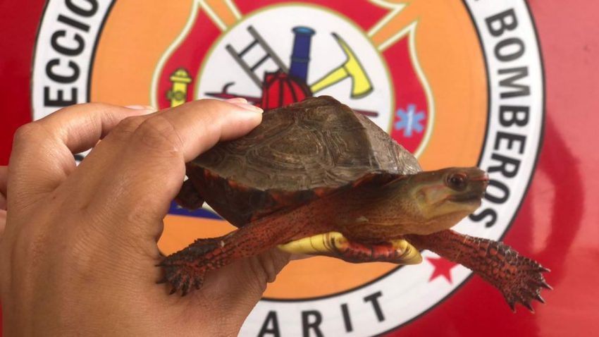 Los hechos se llevaron a cabo cuando un bombero se encontraba arreglando el jardín de su domicilio ubicado en la localidad de Mora, del municipio de Tepic, observando a la tortuga dragón, razón por la cual la trajo a la base central.