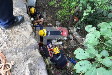 Al lugar de los hechos arribaron elementos de Seguridad Pública, quienes al confirmar los hechos pidieron la presencia de los paramédicos, por lo que al lugar acudieron los cuerpos de auxilio, quienes realizaron el rescate de la persona para trasladarlo a un hospital, debido a que presentaba una fractura expuesta en un pie.