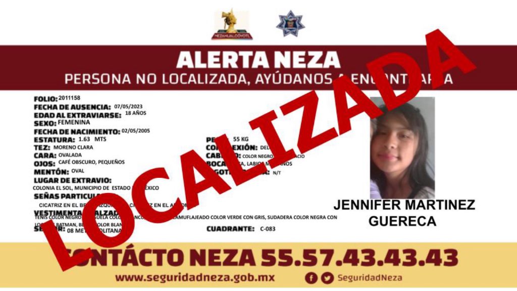 Dándole seguimiento a un reporte, oficiales fueron informados que en el Hotel Flamingos ubicado sobre la calle Puerto Iguana, labora quien está identificada como Jennifer de 18 años de edad, la cual contaba con una ficha de búsqueda y Alerta Ambar, por parte de las autoridades del municipio de Nezahualcóyotl, Estado de México.