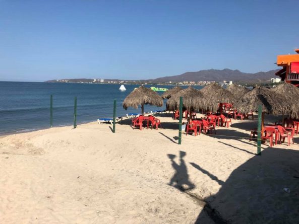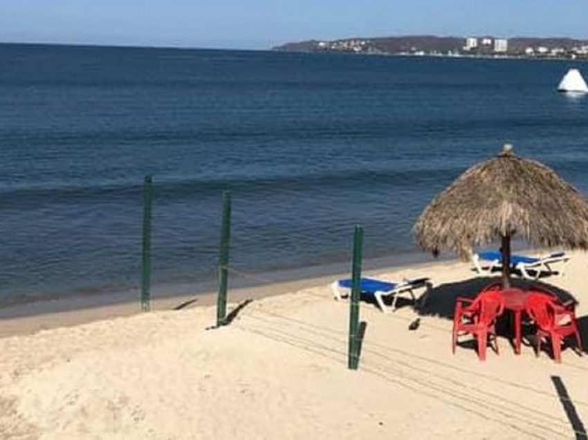 Restaurant Adriano´s coloca lienzo en playa de Bucerías para evitar paso de peatones en área de sus palapas