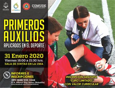 Anunció que el día 31 de enero se realizará el curso de Primeros Auxilios aplicados en el deporte, con horario de 16:00 a 21:30 horas, en la sala de juntas de la Unidad Municipal Administrativa. Cabe comentar que este curso es gratuito, cupo limitado y con valor curricular; no obstante, los interesados en tomar el curso deben acudir a las oficinas a realizar su registro.